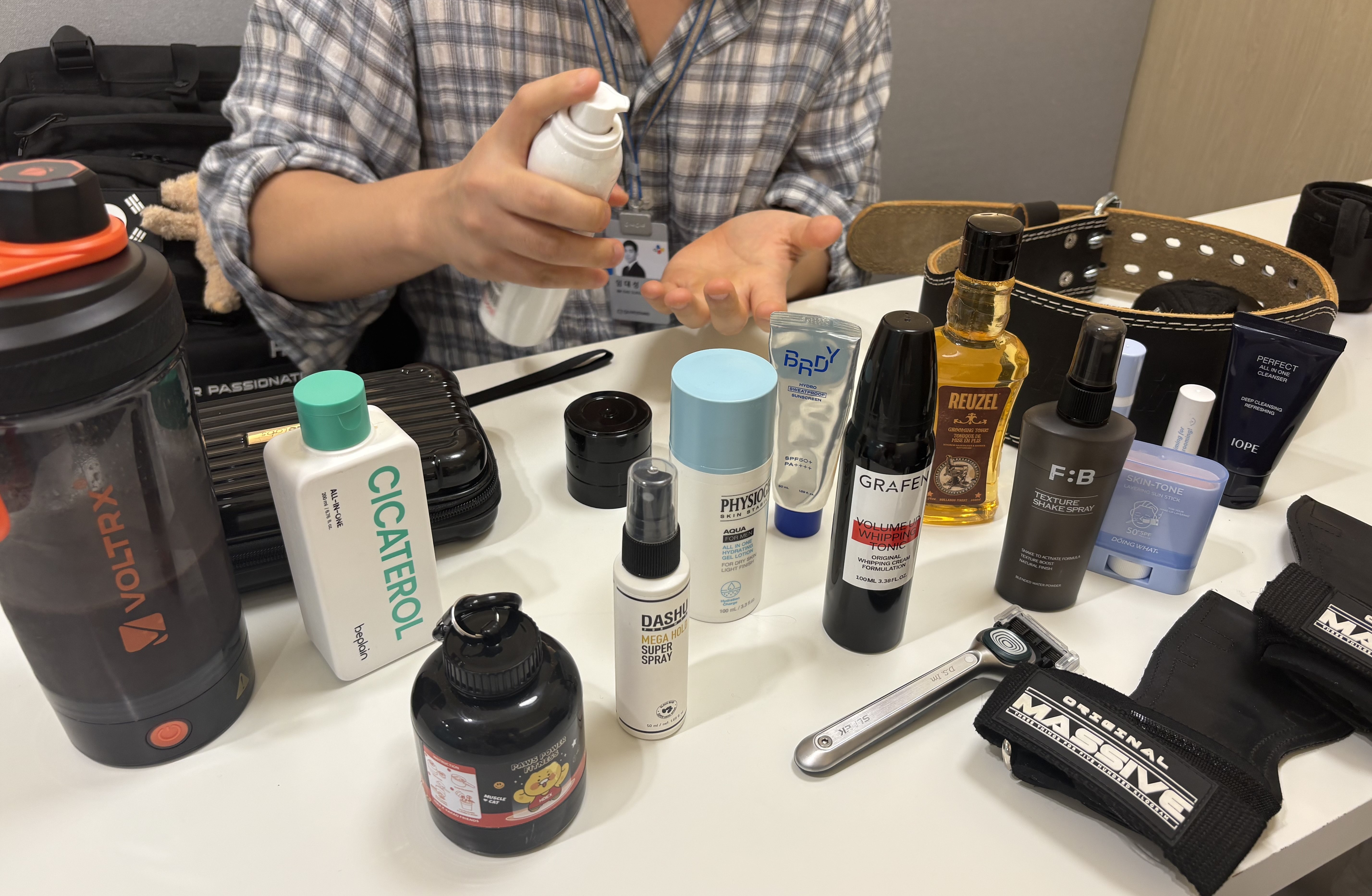 🐸로비: 운동 끝나고 샤워템은 뭐가 좋아? 🦔대성: 폼 타입 바디워시를 추천해. 샤워볼, 타올 필요 없이 간편하거든. 그리고 여름철엔 비플레인이나 피지오겔 올인원 로션 하나면 산뜻하게 보습 끝. 머리를 말릴 땐 그루밍 토닉으로 젖은 머리도 바로 스타일링 가능하지. 요즘은 선스틱, 커버로션, 컬러 립밤처럼 보송하고 산뜻한 텍스처 제품도 남성들이 많이 찾고 있어