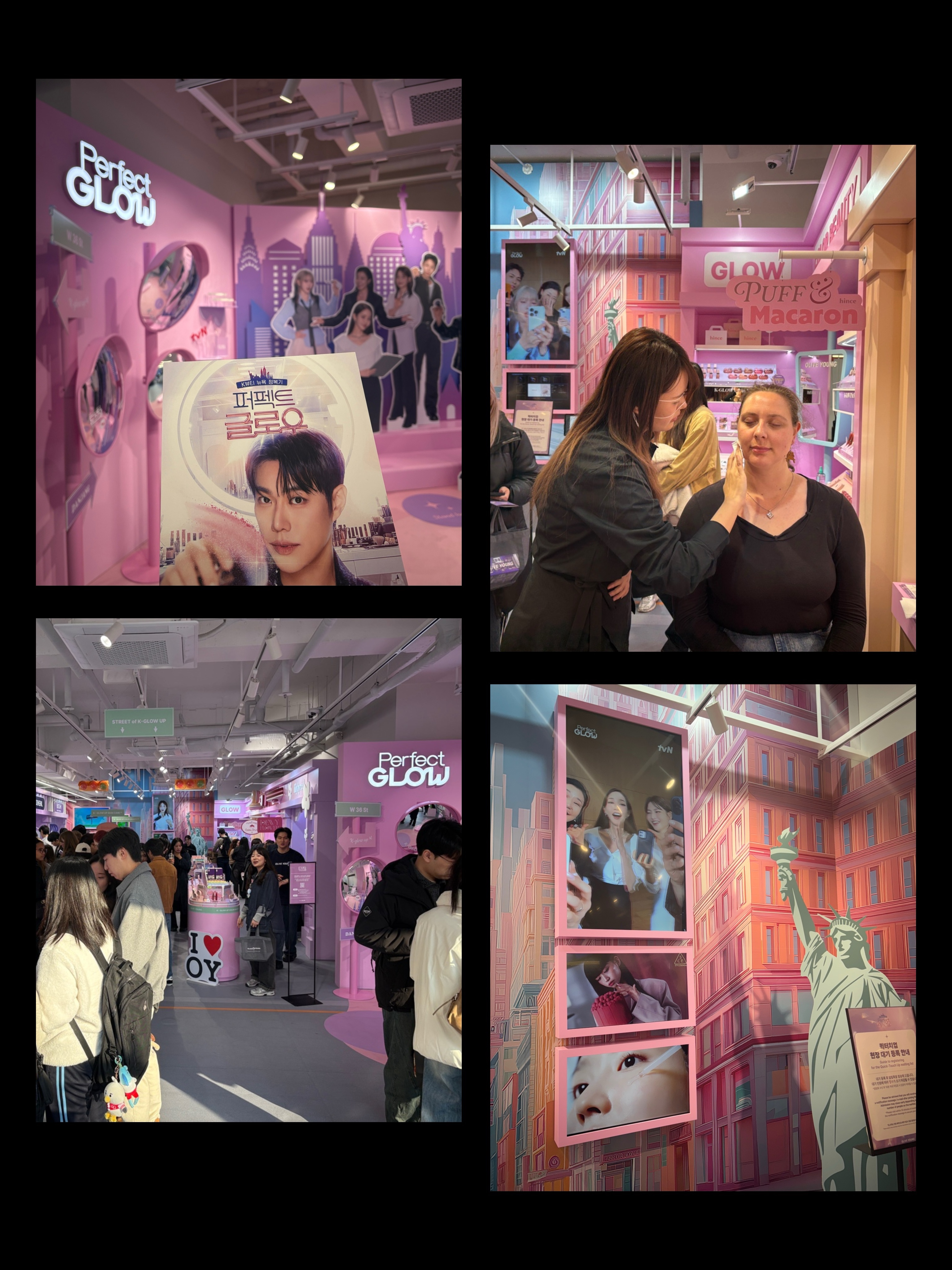 '퍼펙트 글로우 X 올리브영' 팝업스토어는 tvN 예능 '퍼펙트 글로우' 속 뉴욕에 차려진 K뷰티숍 '단장'을 한국에서도 체험할 수 있게 꾸며놓은 공간이야! 특히, 메이크업 아티스트가 직접 진행하는 퀵터치업은 국내외 고객들 사이 "여기가 진짜 K뷰티 현장"이라는 반응이 쏟아지는 중