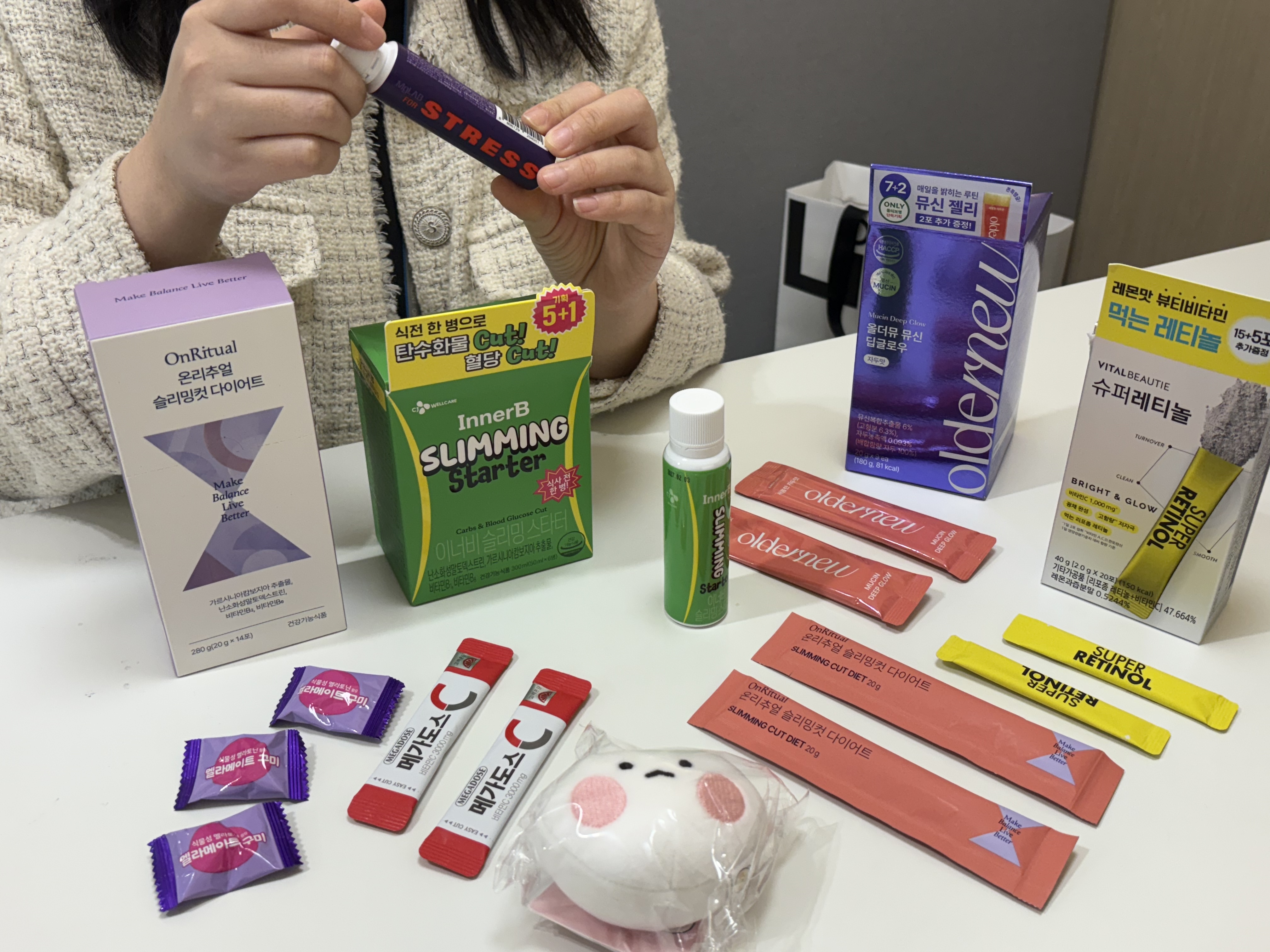 🐸로비: 건강식품 말만 들어도 사알 건강해지는 느낌이야 🐰유빈: 내가 매일 먹는 찐템들로만 가져왔어. 일상 속에서 손이 쉽게 가고 맛도 있는 상품으로! 🐸로비: 원픽템은 뭐야?! 🐰유빈: '고려은단 메가도스C 비타민C'! 이건 정말 찐이야. 3000mg 정도로 함량이 높은데, 호랭이 기운 좀 내야겠다 싶은 날이나 구내염이 살짝 올라올 때 한입에 톡 털어넣으면 도움이 되더라고 🐸로비: 2030 건강 고민 1순위가 수면이라던데, 나이트 루틴도 궁금해 🐰유빈: 잠자기 30분 전 ‘닥터뉴트리 멜라메이트 구미' 추천. 멜라토닌이 1mg 들어 있어서 입문템으로 딱 좋지. '먹기 전과 후 꿀잠 농도가 다르다'는 찐 후기가 많아 🐸로비: 마그네슘은 눈떨릴 때 먹는거 아냐? 🐰유빈: 사실 스트레스 관리에 마그네슘 만한게 또 없어. 마그네슘 자체가 ▲신경 안정▲근육 이완▲에너지 생성에 필수적인 무기질이거든 🐸로비: 나 연중 다이어트 중인데 요즘 간식 대신 슬리밍 젤리로 버티거든. 신상 가져 왔다며? 🐰유빈: 바로 '온리추얼 슬리밍컷 다이어트'. 체지방 감소에 도움을 주는 가르시니아캄보지아 알지? 거기에 톡톡 씹히는 치아씨드 + 적당히 달달하고 상큼한 석류베리맛 + 비타민까지 같이 챙길 수 있어 🐸로비: 요즘은 음료템으로도 관리한다든데 🐰유빈: 국내 원조급 이너뷰티 브랜드 ‘이너비'에서 나온 슬리밍 스타터를 소개해. 이건 마시는 식이섬유야. 20종의 야채 혼합농축액을 한 병에 담았어. 식전 한병이면 탄수화물 지방 합성 억제해서 체지방 감소에 도움을 줄 수 있고 쾌변까지!👍👍