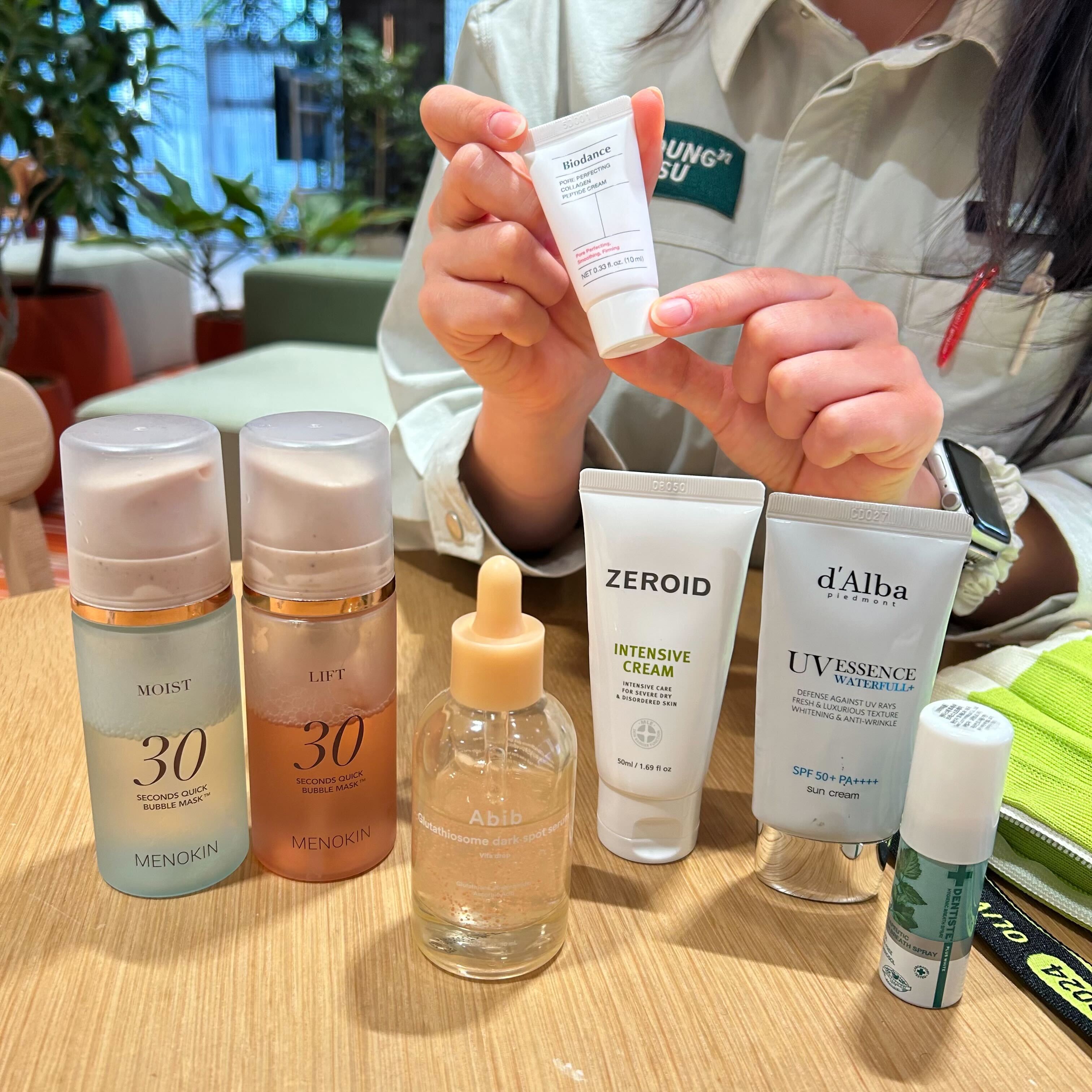 🐱에비: 나도 스킨스캔 받고 싶었는데, 매일 오픈런에 외국인들 줄이 장난 아니더라고. 뷰티컨설턴트 영메이커를 1:1 영접하다니.. 영광이야 🐰하빈: 만나서 반가워 에비, 나도 네 팬이야. 뷰티컨설턴트는 메이크업팀/스킨케어팀으로 나뉘는데 나는 스킨케어 담당. '피부 국가자격증'도 가지고 있어. 매일 고객의 피부 상태를 스킨스캔으로 진단하고 그 결과에 맞춰 스킨케어 루틴을 추천해줘. 원래부터 스킨케어에 관심이 많았는데 제대로 덕업일치 한거지 🐱에비: 어서 알려줘봐. 요즘 스킨케어 핫템 🐰하빈: 단연 메노킨 30초 퀵 버블 마스크. 히알루론산 들어있는 모이스트 라인 → 콜라겐 들어있는 리프트 라인 순으로 두가지 제품을 레이어링하면 할수록 흡수력이 엄청나. 특히 메이크업 전에 쓰면 은은한 광이 올라옴! 🐱에비: 요즘 성분 앞세운 상품들이 많던데...뭐가 어디에 좋은지도 알려줘! 🐰하빈: 먼저 펩타이드는 속건조·탄력에 좋아. 마스크팩으로 입문한 바이오던스의 콜라겐 펩타이드 크림 추천. 그리고 글루타치온. 미백, 색소 침착 완화용. 나는 저녁마다 아비브 글루타치온좀 잡티 세럼 비타 드롭 쓰고 있어. 햇빛에 피부가 쉽게 붉어지거나 잡티가 올라오는 영메이커들은 아침에 이걸 사용하면 오히려 색소 침착이 더 일어날 수 있으니 주의할 것. 비타민C, 레티놀도 아침에 피해야 하는 성분! 🐱에비: K뷰티 열풍 하면 선크림이잖아 🐰하빈: 요새 더하르나이 시카이드 무기자차 선크림에 완전 빠졌어. 피부 열감이 있거나 붉은 타입은 무기자차 선크림을 사용하는 게 좋아. 징크옥사이드가 들어 있어서 자외선을 바로 튕겨내거든. 병풀 추출물과 세라마이드가 같이 들어 있어 발림성+속건조+장벽강화까지 챙긴 꿀템이야